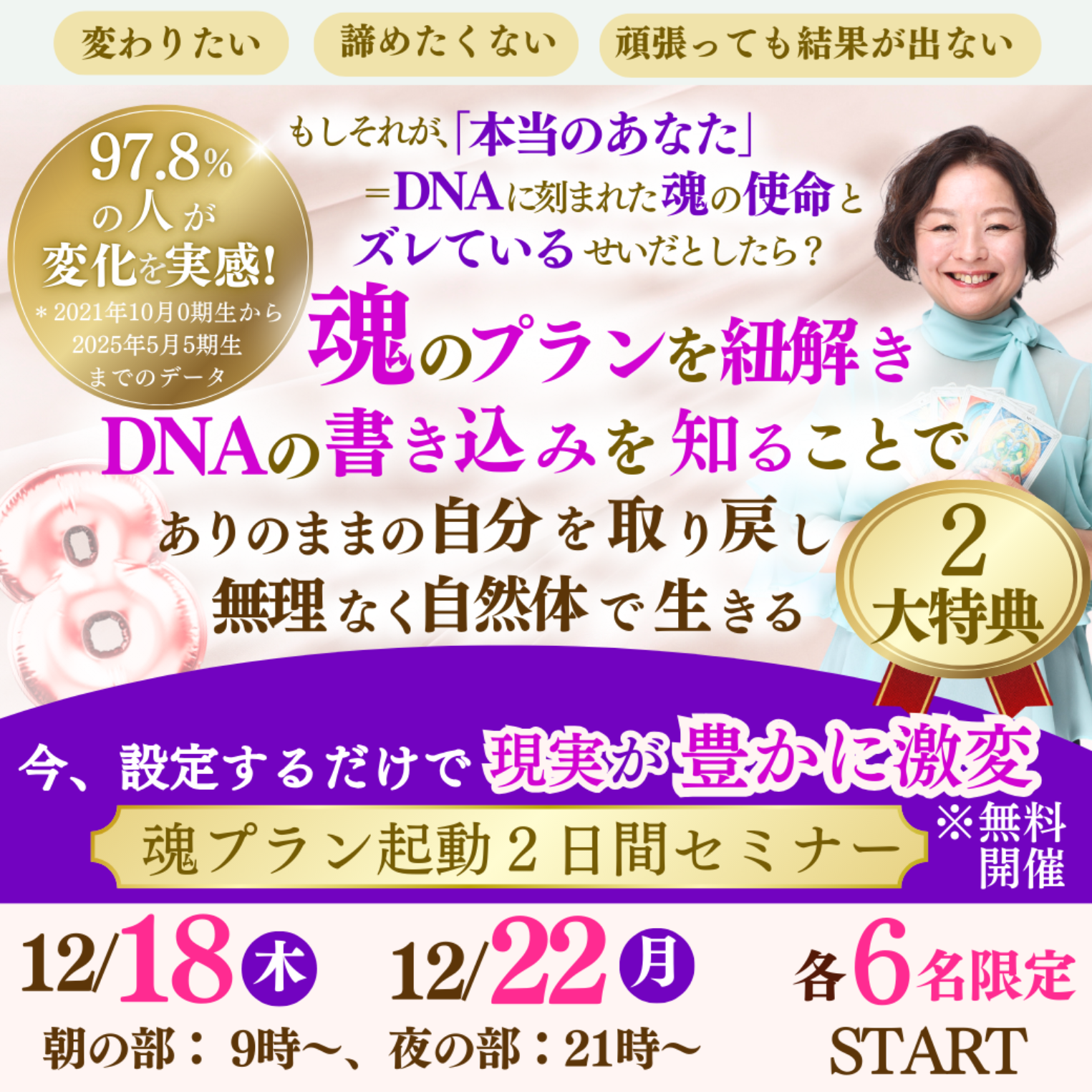 2日間、同じ内容になります。 1日目の際に、2日目のご案内をさせて頂きます。 定員になり次第募集を終了しますので お申し込みは 早めがおすすめです! ■参加費 5000円 ⇨特別キャンペーン中 今だけ無料 ■参加特典 今回をセミナー参加者された方全員にプレゼントいたします。 ※各日程の「定員6名」に到達次第、受付終了となりますのでご検討されてる方はお早めにお申し込みください。 ■会場について ZOOMオンライン *申し込みの方にURLを送信いたします。 ■キャンセルについて 参加確定後のお客様都合のキャンセルは原則承っておりません。