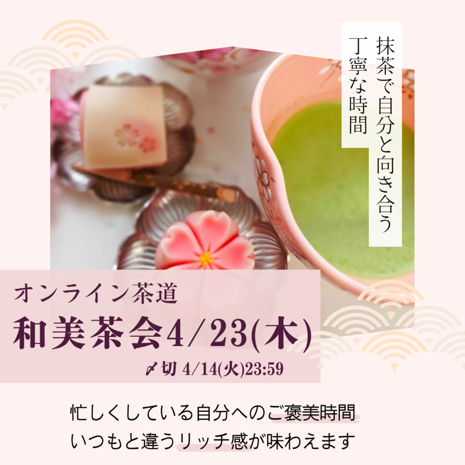 茶道も魅力をたった1時間で感じるオンライン茶道! 4月の和美茶会は 「京都と茶道」第三弾 3月に開催したオンライン茶道 和美茶会の座学で「京都と茶道」第二弾。 三千家のそれぞれの成り立ち、違いなどをおとどけしました。 4月は「京都と茶道」第三弾ということで、宇治抹茶の話をしたいと思います。 ボリュームがありすぎて京都旅1回では足りませんでした。 オススメは京都老舗の抹茶飲み比べです。 こちらの抹茶は都内で販売していましたが、今は幻というほど手に入りません。 ぜひ楽しみの一つにしてくださいね。 茶道と言えば、京都に家元があったりと深い関りがあります。 そして、誰もが知ってる歴史とも関係があり、そんな旅も楽しい京都です。 今回はその興味深い話を座学ではしたいと思います。 興味はあるけど、お道具がないので・・・ とご心配される方もいらっしゃると思いますが 全て自宅にあるものを代用して参加できます! ただ、茶筅はあると泡立ちもよくオススメなのですが、無くても問題ありません。 代用品はお申込みの時にお知らせいたしますので、ご安心くださいね。 近年はビジネスマンに人気の茶道。 忙しい毎日の中で自分におもてなしする時間は必要です。 スーパーフードと言われる抹茶の人気ももちろんですが、茶道を通じて 心がととのう 精神統一になる 感性が豊になる 人生が豊になる 素直な心が育つ 仕事にも役立つ、パフォーマンスが上がる!と人気です。 茶道が大好きで茶道を学びたい、という姿勢は年齢関係ありません。 和美茶会にご参加いただく生徒さんからも 抹茶や可愛い和菓子で癒されるだけではなく、和洋のマナーを改めて知ることができ、とても勉強になりました! と、嬉しいご感想もいただいております。 たった1時間で 茶道、季節行事、マナーを学びながら ご自宅に届く抹茶と和菓子で五感を磨く時間です。 【和美茶会の内容】 ・zoom開催となります。 ・時間は約60分。内容によっては過ぎることもあります。 ・季節の和菓子、抹茶2種類をお届します。 ・前半は茶道のお話をします。 ・後半は京都の老舗抹茶2種類を飲み比べします。 ・抹茶の点て方のレクチャーも一緒にします。 ・お気に入りの抹茶と和菓子で交流時間及び質問タイム。 ★日程 4/23(木)09:00 → 〆切4/14(火)23:59 ※和菓子手配の為、〆切がございます。 また、〆切後のキャンセルはいたしかねますのでご了承ください。 キャンセルの場合でも和菓子と抹茶はお届けいたします。 ★料金 7,700円 (送料込み:冷蔵及び冷凍にてお届けするため) ・茶筅を購入したい方はこちらでご用意可能です。 料金は4400円で初回お届け物と同梱します。 ★支払方法 郵便振込・Paypay ◆参加者の声 ・とくかく楽しかった!ワクワクしすぎてテンション高くなってました! ・お茶への関心と、生活の中でゆっくり過ごす時間の遣い方がわかった気がします。 ・教えていただいたマナーが実際に役立ったことがありました。 ・自分で抹茶を点てることで、抹茶や和菓子がさらにおいしく感じました。 茶道に興味はあるけど、本格的には・・・と 考えていらっしゃる方へ初めの一歩としてご参加いただけると嬉しいです! 初心者の方でも流派が違っても楽しめる内容となっておりますのでご安心ください。 お会いできるのを楽しいしております! 専業主婦から、おけいこ先生へ 子育てがひと段落して 私も趣味を生かして先生になりたい!と 思い一念発起で起業 当時人気だったハーバリウムを教える「おけいこ先生」に転身 その後「おうちで出来る」を基準にさまざまな資格を取得 中学生より通い、裏千家茶道歴25年 准教授の資格まで取得、畳なし、正座なしのイマドキの茶道 テーブル茶道講師として活動中 敷居が高いと思われがちな茶道ですが、茶道のお稽古を通して自然と身につく 女性らしさ、所作などもっと多くの女性に伝えたいと思っております。 現在、オンライン・リアルどちらでもレッスンを提供