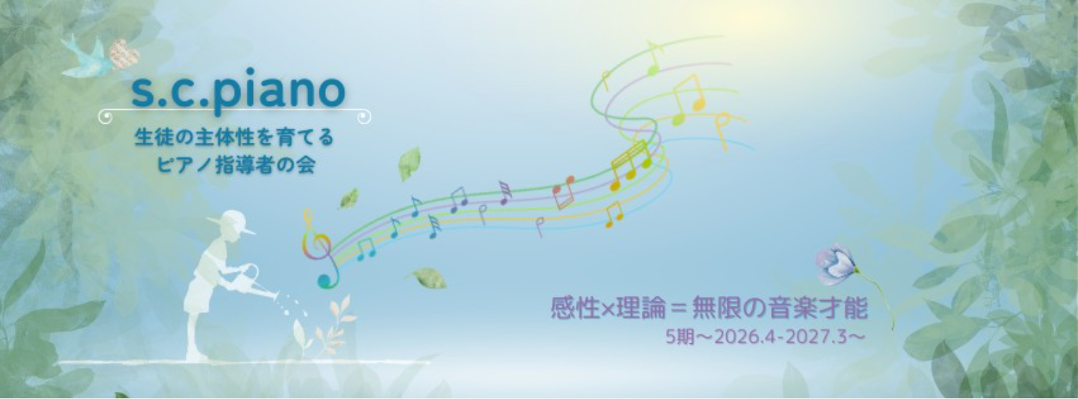2026 5期 感性×理論=無限の音楽才能 s.c.pianoがお届するセミナー 感性×理論=無限の音楽才能 今年度は子どもの主体性を育てるために全調メソッドの世界を広がりを楽しみ さらにメロディと和音の繋がりをつけるために上級レベルにアップします💕 👑生徒のリーダーシップが育ちます 👑コードに強くなるのでどんな曲でも弾けるようになります 👑理論に強くなり学校の成績もアップします 【特典】 ★お忙しくて出席できなくても安心!6回すべて録画視聴が出来ます ★Facebookグループから24時間、質問可能です ★資料などもFacebookグループから共有します ★実践を入れて参加していただけますので直ぐに落とし込めます Zoom機能を使って音を出したり、ミュートをして鍵盤を使います。詳しくはスタッフが対応します。 *s.c.piano 会員様以外、外部の方も受講できますが、 「生徒の主体性を育てるピアノ指導者の会」=S.C.Pianoの会員に加入いただきます。 主体性を育てるためのWAKUWAKUトーク 年6回偶数月(2,4,6,8,10,12月) 第3火曜日AM10時~11時にもご出席ください 主体性を踏まえての実践レッスンとなっております s.c.piano の会費は1000円です(連絡いただけたら対応させていただきますm(__)m) お友達もお誘いあわせの上、お申し込みくださいね こんなこと感じておられますか? ・指導書がないのですが、レベルⅢってどんなことをするのですか?どういう子が育ちどんな楽譜の読み方になっていくの? ・レベルが上がっていくので自分のレベルアップが必要 ・レベルⅠ,Ⅱで指導できていないこともあったけれど次のレベルで指導できるか不安 ・レベルⅢのテキストのスタイルが変わっていますが、生徒は受け容れそうですか? ・生徒、保護者、指導者の期待が膨らむレッスンをしたい このようになれたらと思われていますか? ・全調の音階やその音階上にできる和音と転回形が加わり、さらに表現力豊かな音楽に触れることができるようになります ・様々な時代の音楽、スタイル〔モード・ブルース・ペンタトニック・不完全和音・全音音階〕を経験し音楽の世界を広げれるようになります ・これらの学習したことを8小節~12小節ほどのメロディを通じて初見、移調を試みながら作曲のスキルを積み重ねていくことができます ・子どもたちでなく、先生も、レッスン=音楽セッションのように楽しめます ・練習しなくてもレッスンでできるようになっていくことを保護者に伝えれることが増える 子ども達は「頭、耳、目」すべてをバランスよく動かすことによって全調メソッドを通して 自分で考え自分のスタイルの音楽を作り始めることができていきます 4冊のテキストを使って、1年後には移調奏大好き!作曲大好き!💕になっているでしょう 時代がどのように変っても、子どもが自分で考え、学んでいく力を育て、音楽の本質に立ち返りながら、 子どもたちの心の成長を大切にするための指導者の会です ◆講師プロフィール 講師 細江和代 大阪音楽大学ピアノ科卒業 2005年NYにて、コロンビア大学名誉教授、ロバート・ペース博士にピアノ指導法を学ぶ 関西、中国地方各地にてピアノ指導法講習会の講師となり活動 現在、自宅をはじめ音楽教室、幼稚園放課後幼児のレッスンなど子どもから大人のレッスンを指導 ペース・メソッド指導歴40年以上 ◆参加者の声 ・4冊のテキストを見比べることによって何を伝えていけばいいかがわかり、先の見通しもたってよかった ・声掛けや進め方も工夫すると効果的にレッスンできるということがわかってきた ・生徒と一緒に勉強しようと思って「やらなければいけない」と思っていた縛りが、「いつかはできる」 という気持ちで やってみたら、 最近、生徒の奏でる音がいい音になってきたと感じている。改めてすごい教材だと思った。 ・生徒が音楽の教科書などテキスト以外のものを弾いてきたり、自分で曲を作ってきたりなど、いままでのレッスンではなかったことが 起こった ・色々な項目が生徒の頭の中でつながっているのを実感できた ◆セミナーのご案内 【開催日時】 奇数月 第3火曜日 第1回目5月 20 日(火) 【時間】 10時00分~11時30分 各1 時間30分 【場所】 Zoom 【人数】 約20 名 ※アットホームな雰囲気ですから、お気軽にご質問いただけます。 【料金】 15,000円(全6回) 【振込み先】 名義 細江和代 ゆうちょ銀行 記号14060 番号57861201 他の金融機関からの振り込みは、 (店名) 408 (店番) 408 (預金種目) 普通預金 (口座番号) 57861201 今回のセミナーが生徒さんや保護者の方とのより一層強い絆となり、あなたのピアノ教室のお手伝いができたらこんなに嬉しいことはありません。 お会いできることを楽しみにしています。