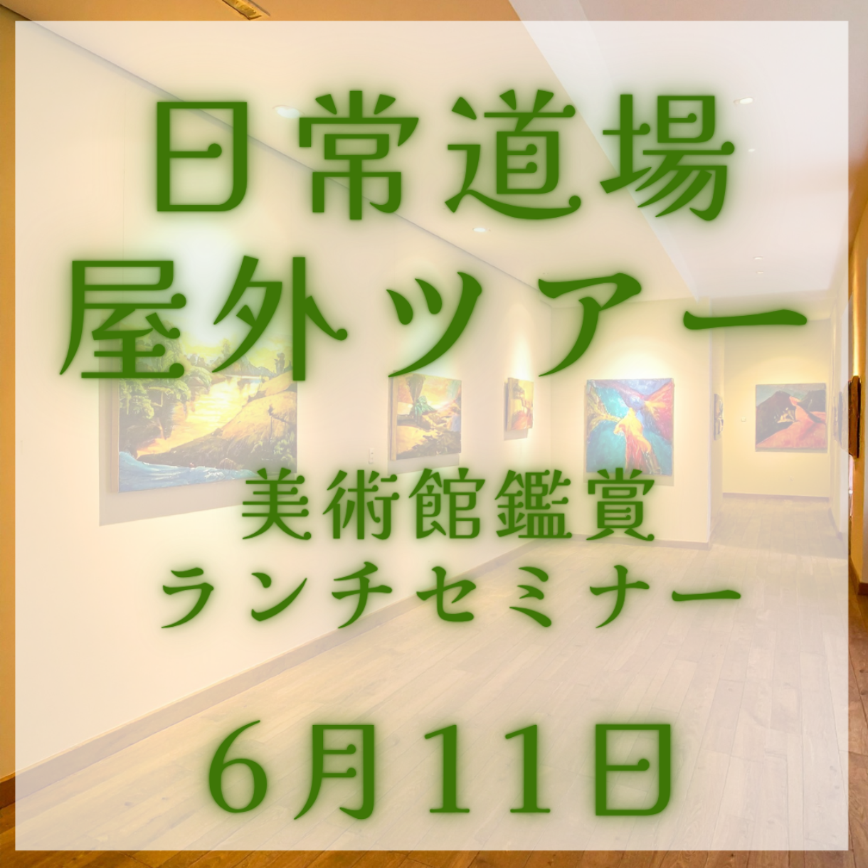 特別企画 日常道場屋外ツアー 源流に触れる 源流人の感性に触れる そんな時間を一緒に過ごしましょう! 限定10名 『日曜美術館』50年展の鑑賞 桑原正守ランチセミナー 参加費 15,000円 (入館料、ランチ代、セミナー代込み) 先着10名となりますので お早めにお申し込み下さい。 ※集合時間含めスケジュールは変更になる可能性があります ※ランチ会場は追って参加者の皆様にお知らせします