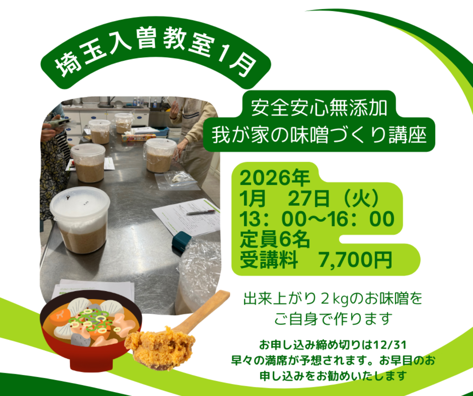安全安心・無添加我が家の味噌づくり2026埼玉入曽教室
